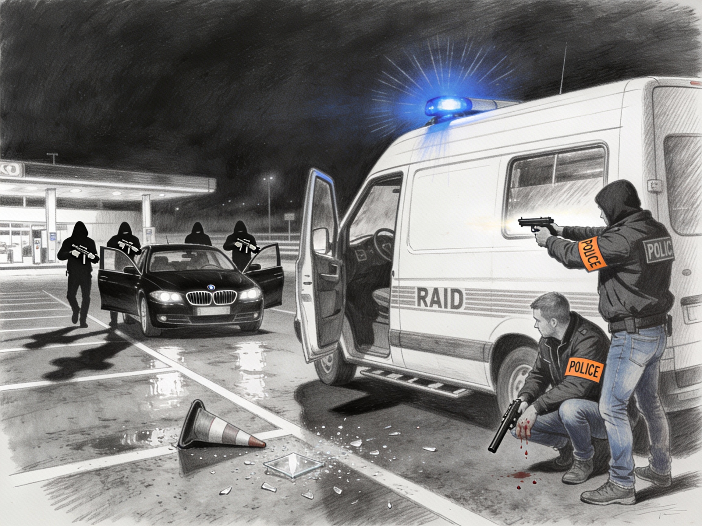 Peu avant 1 heure du matin ce jour de février, une voiture de marque BMW série 5 déboule à toute allure sur une aire de l’autoroute A31 à Selongey, en Côte-d’Or. Dans la nuit noire, ses cinq occupants, armés, descendent du véhicule. Très vite, ils s’approchent d’un utilitaire blanc banalisé où les deux agents du RAID sont en planque. Des échanges de tirs débutent. Les passeurs canardent l’utilitaire. Un des deux policiers riposte depuis la fenêtre avant droite. «On était dans le véhicule comme en cage», décrit un agent du RAID.
